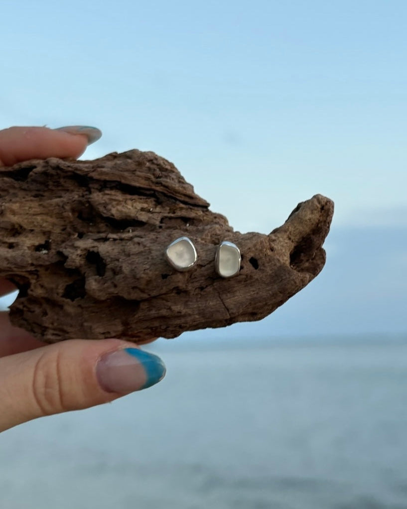 Our classic sea glass stud earrings feature two unique pieces of handpicked sea glass each set in a bezel stud. Your choice of green, white, or brown sea glass. Each set is handpicked to create the perfect pair. These earrings are perfect as an everyday earring, or can be paired with our other earrings to create the perfect stack.